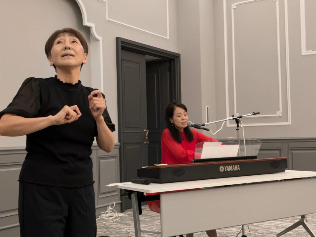 コンサートのタイトルは《命ある限り輝いて ~ヤングケアラーたちに捧げる音楽 RESILIENCE》で、美齊津康弘氏によるヤングケアラーについてのお話や、甲斐弘美氏による手話演奏も披露されました。手話演奏は初めて拝見しましたが、ボディランゲージを駆使して歌詞の内容を伝えると言うもので、その表現力に皆さん感心しきりでした。