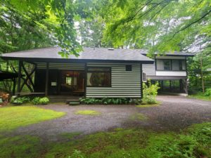 この建築家はしばらく別荘を利用していましたが、病気がちになり、母屋とアトリエが離れている点が不便となったため、南原で大きな別荘を見つけて移りました。その後、私ども夫婦が譲り受けました。夫は日本画家であり、広さだけでなく、天井の電動ブラインドで採光を調整でき、絵庫まで備えた本格的なアトリエ付きのこの別荘は、私どもにとって大変使い勝手が良く、満足して利用しています。
