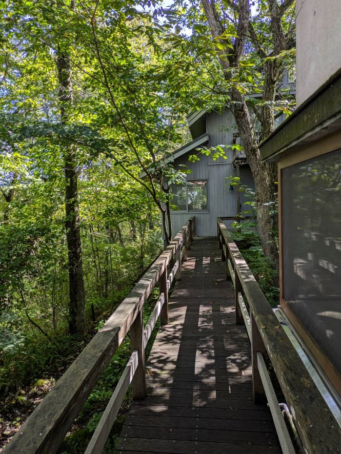 建て替え当時、この南平台にはまだ四軒ほどしか別荘がなかったそうですが、いまではその十倍ほどに増えています。それでも夜になると谷間からフクロウの声が聞こえたり、イタチの姿を見ることもあり、軽井沢らしい自然が今も残る地域です。